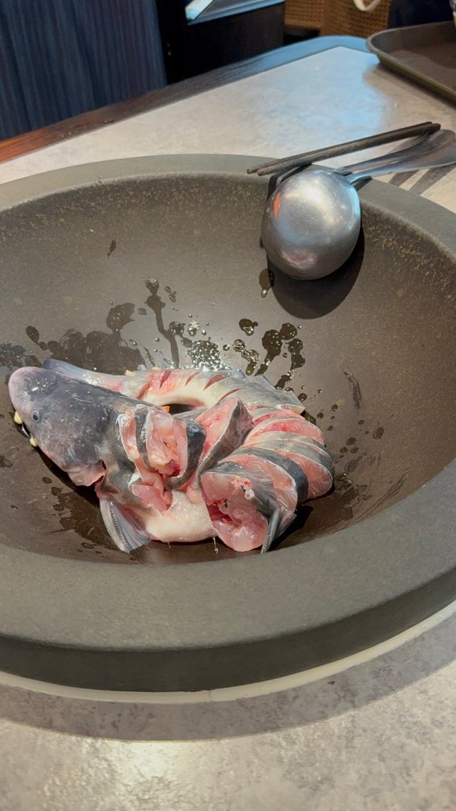 之前食過一次覺得幾唔錯,咁岩去嗰個商場又有分店,所以就決定再食多次!上次叫左套餐 今次就單點食下啲之前無食過既野🐟首先最重要既就梗係魚。店員會將原條魚放入石鍋,再放少少調料去腥,最後落清湯,用高溫蒸氣,煮4分半鐘就食得煮完出嚟條魚好滑好嫩,湯就有好鮮既魚味。今次揀左清湯,如果怕腥既可以揀菇菌湯,一樣咁鮮,魚味濃😋😋另外都叫左啲火鍋料,值得一提既係:🍄🟫綉球菇 平時喺香港好少行街市,喺街都好似無乜食過呢樣野。所以去親大陸見到都一定會點。佢食落好似厚少少既雪耳,爽爽地脆脆地。打邊爐既地方會見到佢。◽️豆腐拼盤中間扭麻花嗰舊又係我人生第一次食到既野。佢叫「云南香豆腐」🤯食落口unun地,好似一舊年糕咁。上網睇下原來佢係一舊加左木薯粉既豆腐。云南菜先會有。兩次光顧加埋食左好多唔同款既野,全部都幾出色,無任何伏位。不過下次我會選擇番套餐,平好多抵好多架😂…查看更多