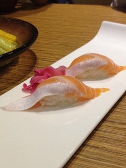鱼天地日本料理这家店开在高平路上,店面不算很大。这家店是和朋友一起光顾的,比较喜欢它家的炸天妇罗,它家的天妇罗用了新鲜的大虾制作而成的,外面包裹了层脆粉,炸的色泽呈淡金黄色,里面的虾肉紧实,沾上番茄酱后味道更好。