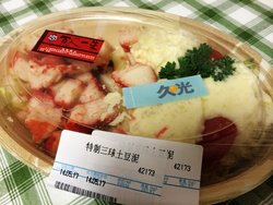 2014年05月17日(周六)重新装修过的久光超市 鱼屋新鲜馆的位置更加好找了 靠近久光内层扶手电梯 一下电梯就可以看到产品的种类依旧很是丰富 卖点绝对是新鲜的刺身啦 每天晚上都会有打折 买的人很多最爱的还是蟹肉土豆色拉 和以前的包装不太一样 一份3个土豆球 单独的蟹肉放在一边 配有些蔬菜蟹肉即使不沾酱也很甜很好吃 土豆泥里有洋葱 某胖胖很爱 那就分工明确的 偶吃蟹肉某胖胖吃土豆泥------------------------------2012年07月16日(周一)吃晚饭后的产物 纯属打牙祭 或许没有点评 偶是不会留意到他们家的 因为这一类的实在是太多啦久光下的超市 冷冻区域旁很大的一块都是他们家 这个刺身的种类真心不是一般的多 对于爱刺身的偶来说难以自拔刺身类都是以重量来计算的 选中了哪一盆之后可以让师傅帮忙切开来 因为他们会比较懂这个纹理的情况寿司的种类也很多 就是属于琳琅满目放满 就会让人有种馋涎欲滴 什么都想吃的冲动 看看每样都很赞!~除了刺身 寿司之类的还有鳗鱼饭啊 土豆色拉 蟹肉色拉之类的主食和小吃 对于不同的需要来说都满足了这次尝试了蟹腿肉色拉 那个肉质绝对厚实鲜美啊 配的是丘比的小包色拉酱两只 各式的蔬菜 给人的感觉是很清爽很喜欢的口感 有蟹腿肉的鲜甜 土豆泥的奶香和蔬菜本身的爽口 一份绝对的管饱 而且营养美味 以后会常吃查看更多
