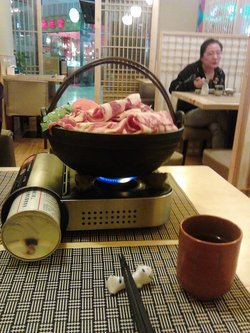 两个人点了,一个海草,一份猪排蛋套餐,一份鳗鱼,还有一个寿喜锅。 寿喜锅,好像是65元,里面有牛肉、豆腐、白菜、香菇等,汤汁味道甜,牛肉卷不错,就算煮得时间略久,也不会老。 鳗鱼,一般吧,鳗鱼蛮肥的。 猪排蛋套餐里面有猪排蛋饭、一个茶碗蒸、一小份蔬菜色拉、一小份土豆泥,两片橙子,按照35元的价格来说,性价比还不错。炸猪排因为蛋包裹的原因,外层不是很脆,里面肉还挺嫩的。 店员服务态度还不错,两个人一共吃了167元。