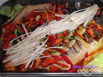 从天津来沪的人气烤鱼店,现在分店也是越开越多,家家生意火爆。他家烤鱼用的是电磁炉底座,这样感觉吃完后,身上也不会沾染上过多的烤鱼味。烤鱼口味繁多,而且都颇有创意。如冬阴功味、咖喱味、荔枝味、黄金酸辣味等等。。。第一次去选了冬阴功味的。。。其实还蛮纠结是否要点咖喱的,算了,咖喱的下次再说。鱼本来就三种可选,最便宜的草鱼忽略,点了黑鱼,刺少,吃起来更爽。点好后去捞鱼处选活鱼,当场选,活杀现烤,很新鲜。捞了条2斤8两8的。。。好吉利的数字啊。配菜3个:金针菇、莴苣和生菜;饮料:铁达尼奶茶和椰浆奶昔根据价格,毛估估要200+。。。果然,207大洋。。。价格是真的没优势。。。好在烤鱼味道很不错,鱼肉入味,而且冬阴功口味独特啊,微辣中带着点酸溜溜的口感,很棒!饮料,铁达尼奶茶挺大一杯,感觉和港式的不一样,茶味很少,偏甜,不是我喜欢的那种;椰浆奶昔,很爽口,解辣。其他口味的烤鱼有待再次探店。