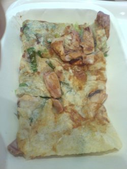 因为在旁边的那家瓢六吃好乌冬面以后出去兜了一圈,后来觉得又有点饿了,于是我同学给我推荐了这家,可以外带,正好一边看电影一边吃~他们家还是现做的,虽然要等一等,不过很不错哦@ 八爪鱼泡菜薄饼/15块,我同学给我推荐了三文鱼泡菜薄饼帮八爪鱼泡菜薄饼,不过我不大喜欢三文鱼,于是就选了八爪鱼~买好以后他帮你切好打包直接带走,因为坐下来吃的时候已经电影开始了,看不大清楚,所以匆匆拍了照片赶紧塞嘴巴。感觉是在饼上放了些泡菜+八爪鱼,还有些调料,味道不错,辣辣的,很开胃,三下五除二就被我干掉了,有机会的话一定要再试试看鱿鱼日式薄饼~…查看更多