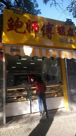 鲍师傅糕点阜成门内大街甲193号, 西城区。很多家连锁分店哦,这家店人也很多的呢,好多人都买那个肉松面包哦,看起来不错,都是称重的那种,还有那个桃酥味道也不错哦,就是价格小贵,将近20块钱一斤呢,不过味道不错,很多的芝麻,比较甜的味道。查看更多
