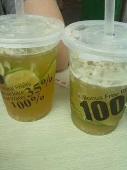 不知道从什么时候起,鲜果时光遍地开花了,不论吃点什么,买杯鲜果饮料喝喝都很爽口,个人最喜欢的是青柠,热饮也是不错。不过对里面的用料还是打个问题,个人感觉不是真的水果浓缩汁,是勾兑的果味素。所以不建议多喝。查看更多
