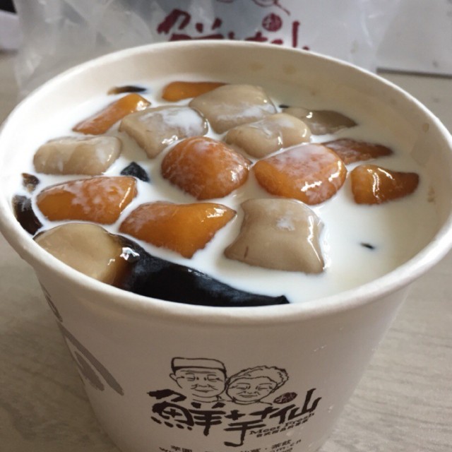 鲜芋仙说下午饿的时候最想吃的呢,芋圆4号是最爱,芋圆好好吃啊,不同的颜色也很可爱哦,超级爱吃,还有其他珍珠啊,布丁啊,芋头啊,都超级好吃的,汤也好喝的,好好吃,吃一杯就很饱了哦,哈哈哈,烧仙草也好吃的,建议外卖吃