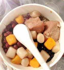 这家鲜芋仙的地址是悠唐生活广场4层南侧(近鹿港小镇),他家新出了个什么喜圆烧,就去尝了尝,感觉样子好看味道一般吧,就觉得这个小碗里面的百合和红枣好吃,其他都觉得很一般感觉,红枣特别甜,百合肉肉的口感不错。查看更多
