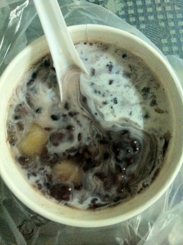 同事请客去的,地方不算大也不少。可以堂吃跟外卖的。感觉外面的碗好小哦。还是堂吃划算。点了芋圆4号,里面有芋圆,还有许多各式各样的圆子,还有龟苓膏,丰富蛮丰富的。但是圆子的口感都差不多呢。