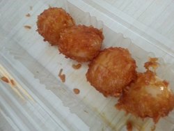 鲜芋仙以甜品为主,大家都很爱吃,芋圆Q弹可口,现在秋季出了新甜品,如意球,如果原价22元一份那肯定是相当划不来现在9元一份,等的时候有点长,要等10分钟是热的,吃到口里非常有嚼劲,很弹牙,非常香,外面裹的是椰蓉,,,我的最爱啊一份有五个,配有牙签,味道还可以