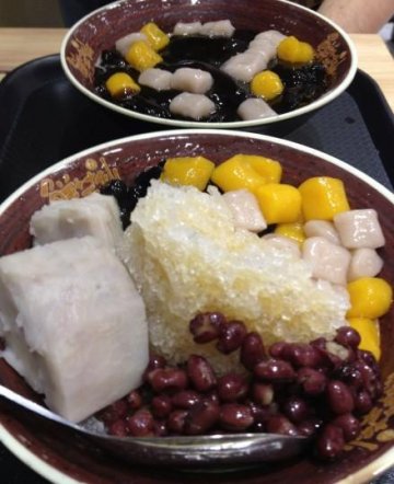 下午有空就喜欢来一碗他们家甜品,招牌芋圆4号是我的最爱!冬天吃热的,是红豆汤底,很纯正很浓郁的红豆汤水的味道,夏天冰的就是细细的挫冰,很冰爽!配料有仙草冻,我爱的,QQ弹,还不会长胖,对女生还好。芋头有2大块,非常软糯,吃起来很抵饱,减肥的时候来一碗就可以了!最爱的就是芋圆了,正宗台湾手工味道,QQ劲到十足,有芋头口味,山芋口味,吃的就是停不下来,不过先森觉得咬的费劲,不喜欢吃哦!哈哈 便宜我了!18块钱一碗的价格很亲民啦,还可以自己额外加炼乳和奶,搭配着吃口感更赞!