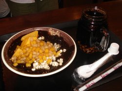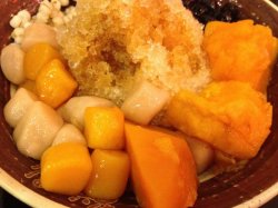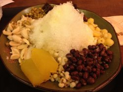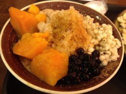 不想吃冰的,于是点了一碗热的,结果感觉不好吃,下次还是要吃冰的。感觉就是一碗绿豆汤,里面的东西也很少,味道也偏甜。想到某同事说的她也会烧“鲜芋仙”,还果然就是这么回事。不像冰的是一大碗,虽然知道冰也是水,但是料都在外面,看得很清楚。看来,下次还是要吃冰的。查看更多