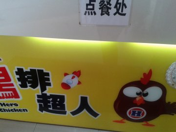 店面好小;出品比较小;但味道可以!标志小鸡非常可爱!出品现炸等的时间较长!不过服务态度不错非常热情!以前吃过爆浆鸡排:皮香脆香口;肉嫩滑多汁;特别是中间的芝士呈黄色细滑!但没什么芝士味!橙汁味道可以;好香橙味;喝落有少少酸!
