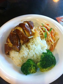 鸿光楼算是北京比较地道的港式茶餐厅了,中午的套餐挺划算的,经济实惠适合随便吃吃,最喜欢的是白切鸡套餐,鸡肉肉皮软嫩,肉味儿很鲜甜,汤汁香浓略有些甜味,配几棵菜拌着饭吃正好。还有免费赠送的猪肺汤,汤不油腻不过味道很浓,十分鲜美。查看更多