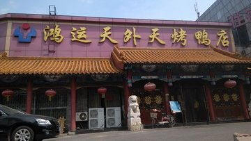 这家鸿运天外天烤鸭店的地址是阜成路65号,他家的烤鸭味道不错,他家用餐环境很不错,店面超级大,还会二层的,用餐感觉很宽敞,最爱的是他家的炒合菜还有宫保鸡丁,烤鸭挺酥催的。炒合菜里面有豆芽韭菜粉丝等,上面盖一个鸡蛋很好吃。…查看更多
