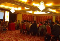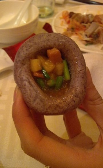 很久以前公司大老板来上海,于是请了一帮子刚进公司的小巴辣子去吃饭,真奇怪,不是应该先请老员工么,不管了,反正有免费饭饭吃我最开心了~~~哈哈,虽然地方么一般性吧冷菜有好多个,我都不大记得了,就说几个印象深刻的吧@海蜇头,恩,东西脆脆的,就是普普通通,下面还放了很多黄瓜,我没吃,我同事吃了那个黄瓜,觉得有点苦@糖藕,这个糖藕我还是挺喜欢的,因为不算很甜,可惜一圈兜下来就剩下一片了。。。。@贡菜,第一次吃,之前完全不知道他的存在,听清淡的,咬上去脆脆的,挺好@天下第一包,这个应该不算是冷菜了吧,看上去像个面包,里面是叉烧,叉烧包的味道还是不错的,不过跟外面的比起来就是样子不太一样,口味差不多@多宝鱼,鱼肉么还算行,主要是汤汁还不错,就是上来的时候已经有点冷掉了@烤鸭,额。。。这个实在是。。。因为上来也是冷掉了,吃上去有点油腻,要是是热的肯定味道还不错,因为至少它的皮非常脆@鸡汤,神哪,鸡汤的味道也忒淡了点,据我同事的话来说,这只鸡在汤里估计半个钟头都没有,而且上面漂浮的枸杞是最后扔进去的@烤羊排,这个跟我在西藏餐厅吃的问上去挺像的,但是样子不太一样,估计是羊肉的位子不太一样,肉倒是很嫩啦,不错不错@猪蹄,因为猪蹄的皮很美容,虽然我不喜欢吃皮,但是还是搞了一块,还行,不算很油,可惜也是一两圈兜下来,皮就没多少了。。。@炒粉丝,这个上来的时候基本上大家都要饱了,而且口味也一般,最后剩下了很多@茶树菇牛肉,这个菜也咸了点,牛肉也不是很好吃,幸好还有茶树菇@生菜,台面上绿色蔬菜不多啊,所以这个也挺抢手的,最后我也吃了很多,当作是调节下吃了那么多油腻的东西@杂粮包+菜,这个菜还算行吧,粗粮,对身体好@酒酿丸子,我最喜欢吃酒酿丸子了~~~虽然这里的酒味不重,甜度倒还算可以,最后的丸子都是被我航掉的,挖哈哈~~~这个也不能算是丸子啦,因为是圆柱形的。。。@红葡萄酒,这个酒味道有点酸,就是我不大记得他的牌子了,唉,就记得他是12度,喝了几口脸就爆红。。。太十三了。。。这里的菜也就这样了,就是地方挺大的,大概太大了,烧的菜又多,上来的菜总觉得很多都冷掉了。。。