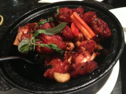 专做台湾菜的餐厅,生意很不错,环境也挺舒服的。三杯鸡是台湾菜里的特色,色面看上去就很诱人,放在砂锅里的还有滋滋的声响呢。九层塔放得很多,香味浓郁,不过吃不惯的人可能不太能接受这个味道。鸡肉选用的是带皮带肉带骨头的部位,所以特别的嫩口,外层皮还有点脆脆的,酱汁味道鲜咸适中,一点都不油。查看更多