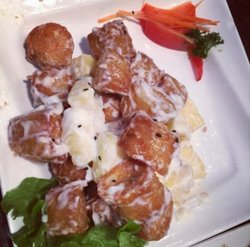 他家的地理位置在就在西单北大街甲131号西单大悦城6楼(近君太百货)来过他家几次,就是没点那个油条虾,后来这次朋友推荐了,就要了一份儿。菠萝油条虾的味道还是不错的,有菠萝的香味(最爱菠萝),油条里面是虾肉泥,很好吃,味道还不错,推荐。查看更多