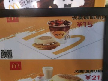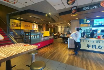 这家在商业中心的麦当劳店面的确要比其他分店要大一些,卫生条件是无从质疑的,出品味道也不错,新鲜现做,等候的时间短,而且早餐的价钱真是几便。麦满分,早餐的精选,一个包一杯咖啡才6蚊,在这物价飞涨的年代真是好超值了,个包虽然不是很大只,但是里面的蛋煎得不错,口感几嫩,个蛋黄虽然是散了,但是才刚刚熟,还有薄薄一块芝士,吃起来都几香,猪柳蛋堡,蛋就不多说了,和麦满分的一样,猪柳排的口感都不错,肉质够嫩,虽然不是上乘的肉,但是作为几蚊的早餐算是很不错了。