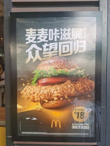 在这里等朋友,肚子也有点饿,于是点了一份套餐,其中包括香辣鸡腿堡,很经典,也很喜欢的一款汉堡,炸鸡腿肉香辣酥脆,味香,肉嫩,一个字,正。然而这次却发现,鸡腿堡里面的鸡腿肉是有史以来最薄的,肉嫩?无处可谈,香辣虽在,然而酥脆,因为肉薄显得有点硬。实在奇怪,为啥它的鸡腿比以前吃的薄了一半呢?