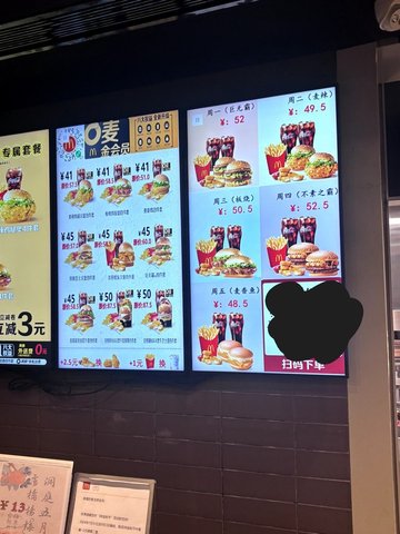 薯條 / 麥辣雞翅 / 雙層吉士漢堡 / 圓筒冰淇淋 / 安格斯max厚牛培根堡 / 酷辣黑椒雞腿堡