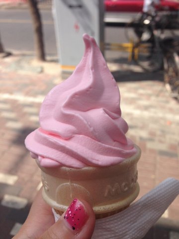 为了吃新出的樱花甜筒,可以跑了好多麦当劳。问下来都没人。回去百度了一下。只有甜品站才有冷饮。特地来到这里。5元一只。价格是比以前的贵了。不过第二个半价哦。2个才7.5元。还是非常划算的。颜色非常的漂亮。味道有点花香的。非常喜欢呢。