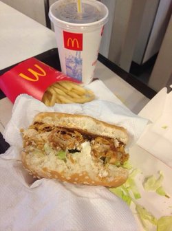 朝阳区(三里屯)三里屯路19号三里屯VILLAGE购物中心B1楼的麦当劳  人很多。每次去都排队。选了自己比较喜欢的麦辣鸡腿汉堡、一份可乐、一份薯条。汉堡很不错。里面的鸡腿外酥里嫩。鸡肉很嫩滑。可乐加冰太多了。薯条刚炸的很香脆。查看更多