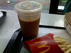 听说了麦当劳新出来的奶茶就一直想去尝尝看,正好晚上要去接同学!就在火车站的麦当劳坐着等他,要了黑芝麻珍珠奶茶呢,还真的是黑芝麻做的珍珠哦,咬一口,特别的香糯还有浓郁的芝麻的香味呢!就是奶茶真的很淡,不够甜不够香,茶味真的很浓,最后我要了一个奶精,这才觉得好了很多!现在第二杯半价比较的核算!查看更多
