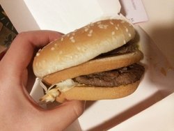 最近特价,巨无霸10元一个,有便宜必须占,咩哈哈,个头基本没缩水,双层牛肉饼还是很过瘾的,不过感觉这牛肉饼好像比以前肥了,没那么紧实了,吃起来油润润的,所以加点酸黄瓜解腻还是很有必要,不懂为什么那么多人嫌弃,还主动要求不加