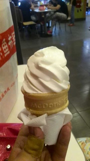 麦当劳店面的环境和服务挺好的,在里面进餐很安静。这里的价格全国连锁统一的。口味也差不多。夏天来了,我喜欢吃麦当劳的圆筒,每种口味都吃过,最喜欢的还是白色圆筒,奶味比较的浓,冰淇淋口感很细腻,没有冰沙,很纯,就是有的服务员打得冰淇淋很少,只是上面的一层,里面圆筒里面都是空的。
