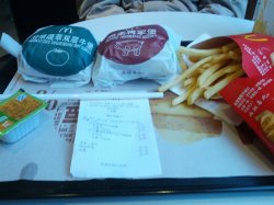 和朋友在附近办事~晚餐就在麦当劳解决的,点了培根蔬萃双层牛堡和温柔将军堡~晚上的套餐还是蛮划算的~20块钱的套餐有汉堡、薯条和饮料~不过一直觉得麦当劳的服务态度不好~感觉很冷漠的!双层牛堡,两层牛肉吃起来就是满足~温柔将军堡中间是猪肉馅的~味道蛮好吃的~吃起来很紧实,麦当劳的薯条吃起来很有味道,蘸点番茄酱很不错哦~快餐的话麦当劳还是蛮不错的,分店也很多。查看更多