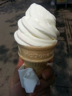 天暖和了,又到了吃冰淇淋的时候了逛 街的时候路过M当劳的甜品站。。M当劳的甜筒还是蛮好吃的,又经济实惠。3元一个脆脆的蛋筒,软绵绵的冰淇淋不是很冰的感觉,甜滋滋的,奶味也够麦炫风也非常 好吃,喜欢里面的奥利奥草霉新地也非常好吃哦,酸甜可口配上奶油的香浓,真是很棒呢查看更多