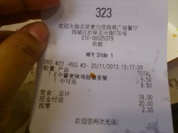 位置很不错的麦当劳,从西单地铁出来一拐就能看到门面。但是实际上是在地下一层,另外在汉光里面的门是全开放的。座位不少,人也不少。有洗手池没有看到卫生间,估计要用汉光的。点了黑白汉堡套餐:最近主推这个吧?比去年的黑白味道好得多。尤其是白汉堡,里面真的夹了里脊肉的感觉,而且是照烧风味,外面的巧克力也不太腻了,肉的味道更突出,感觉像是食物了。查看更多