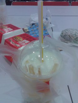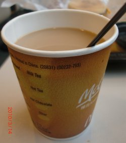 自从在麦当劳喝过他家的日式鲜奶培茶之后,对这个麦当劳里开设的小小咖啡馆有了点好感,这次和友人在静安寺附近逛,走过麦当劳的时候,就想再去喝一杯。点单的时候,店员问我是要热的还是冰的,我想到热的喝过了,就来杯冰的吧,没想到店员做好送来的饮料,竟然是一杯类似于星冰乐的饮料,再仔细看这款饮料的名字,原来后面还加了冰脆两个字。冰脆上同样有很厚的一层奶泡,茶粉和冰被搅拌的很厚,味道甜中带着一点点的茶味,口感很好。查看更多