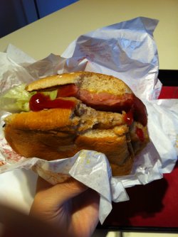 巨无霸10块也算值了。还来了一份薯条~薯条不错,赶上刚炸出来的薯条了~所以特别热特别脆~要了2个套餐就给两包番茄酱,不仅涨价,还更抠儿了!汉堡里的牛肉很好吃,两层肉饼够实在~可乐不建议加冰块,味道会淡的。查看更多