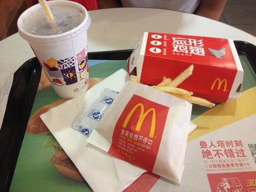 约了朋友去王府井后面的茶豆咖啡厅,离约定的时间还早,小朋友又嚷嚷着饿了,就去王府井二楼的这家麦当劳小坐了会,给她买了一份套餐,套餐里包含一个小杯可乐,一份小份薯条和一对辣翅,辣翅是刚出炉的,吃起有点辣,外酥里嫩,薯条可能是放了一会,有点回软了,吃起有点影响口感,但还算好。这家店好像没有WIFI,地理位置原因吧,人比较多。…查看更多