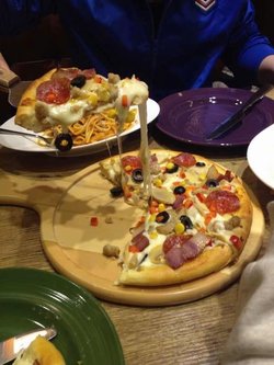 地址位于太阳宫七圣中街12号院爱琴海购物中心5楼, 左家庄,环境不错,服务也不错,他家有各种各样的披萨,食材很丰富,味道还不错,芝士味道浓郁,上面有培根,玉米,胡萝卜丁和蘑菇,而且咬一口能拉出很长的丝状,意大利面也不错,面条很劲道,酱汁酸甜可口,好吃。Read More