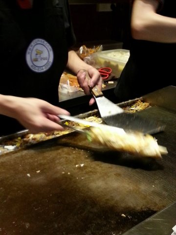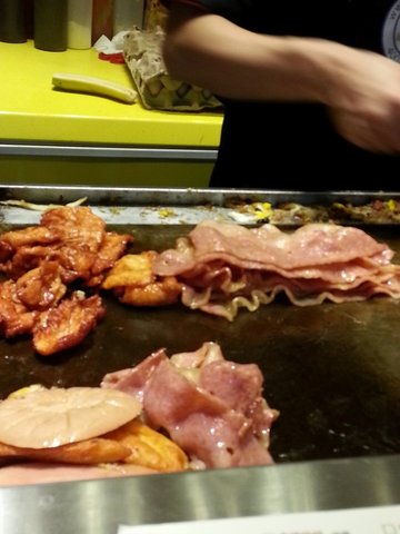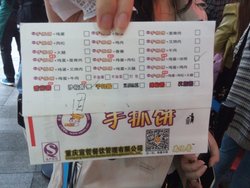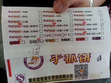 首先,这家店在江北观音桥商圈中心位置的天天尚街入口处,一看到排S型队伍购买的就是了。商家工作人员给购买过的顾客每人发一个手抓饼包装袋,等排到点了,直接用这个装好、带走。味道闻起很香,吃起也很不错,分量很多,鸡蛋是一整个,培根也很大一片。店面很小,不过服务态度还不错,因为人手不够,动作比较慢。现在在做团购,比较火爆。
