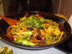相比较别家的麻辣盛宴 这家还是比较清闲的。偶尔去看过电影 顺便到旁边吃个饭。这家有时会有活动,等为时间也不长。进去就可以点菜了。他家辣倒不是狠辣,主要麻椒太多 吃到几颗就麻的吃不消。金针菇 生菜 宽粉是必点。宽粉很喜欢 软软的很劲道 加入干锅中煸炒也很入味,就是分量太少啦。肉的话 牛蛙很鲜嫩,羊肉太膻,脆骨很不错,量有时也不少。缺点就是 每次吃到底下油多的都不行啊,太油腻了 不健康!