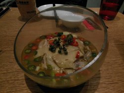 又是一家需要排长龙的餐厅,看名字就能猜到他家是以辣菜为主的呢。环境蛮好的,菜的价格有点小贵。辣度适中,看上去都是红红的,其实味道不是很辣的那种。水煮鲶鱼,很好吃,鱼肉很嫩,有给面包吸油。一口咬下去可以感觉到鱼肉的弹性。查看更多