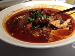 很久没吃川菜了,和同学小聚选择了<麻辣诱惑>,正好要到南京路步行街上去逛,先吃过饭,吃好才有力气去逛街,女人吗最爱吃饭逛街购物了. 它家的环境还是较雅的,红黑为主基调,面积较大,很宽敞,每桌之间有间距,不影响大家的聊天.一就坐,就有小食提供,玉米色拉小薯片及银耳羹吃,点菜当然要点它家的特色菜:水煮鲶鱼:(99元)很大一盆,里面的鱼片很大,鱼肉嫩滑鲜美,配的豆芽也很好吃,店家还提面包片来吸油,第一次这样的吃法,店家还给我们换面包片.这个不错.砂锅野生菌(42元)我较喜欢吃菌茹类的,里面菌菇类还不少,口味很鲜美,茶树菇也较嫩,喜欢的;金纱鱼籽豆腐(36元/小份)这个店家考虑的较周到,人少点小份的,里面有鱼籽和虾仁,豆腐很嫩滑,味道较好.主食就点了担担面(9元)量不是很大,女生吃正好,吃到后面我觉得较辣,没吃完,二个同学都吃完了,还说味道好,可能各人的口味不同吧. 用了100减30元的二张券,打折下来,价格还是能接受的.另外他们家还提供美甲等服务,下次有机会过来做做看.呵呵.…查看更多