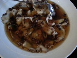 麻辣诱惑在东直门的分店环境很好,布置的很温馨,灯光不是很亮,服务特别好。这里的菜大多都是麻辣口味的,味道很赞,价格有些小贵。装口水鸡的碗很好玩,透明的,看着晶莹剔透的,里面的鸡肉很嫩滑,料汁很多,鸡肉都全部浸在了汤汁了,很入味,吃着香辣可口。查看更多