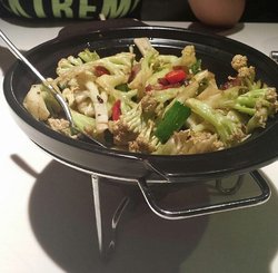 环境很好的一家店,就在君太百货7楼,逛街顺便吃的。服务很好,还给倒了柠檬水,挺冰凉的,很好喝。菜品很爱吃干锅花菜,花菜是那种长菜花做的,特别劲道,开始吃不是很辣,因为是加热的,所以越到最后越辣,特别的下饭。2人消费120元。查看更多