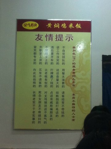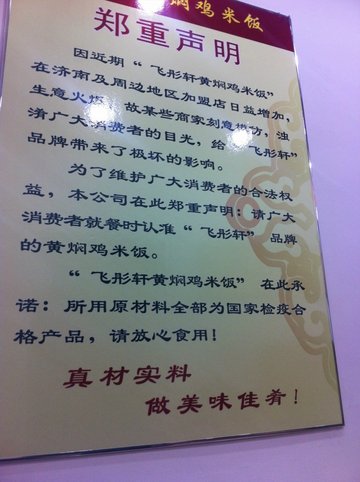 不知道从什么时候开始,黄焖鸡米饭用它掩耳不及盗铃之势和雨后春笋般的速度,遍及沈阳各大区域,无论在各大商业街区还是居民住宅院落旁,都可以看到新开的招牌“黄焖鸡米饭”。出于好奇与尝鲜,今天走过铁百附近,决定去尝一尝。我们到的时候已经是晚上7点多,店里没有多少人,老板娘是个特自来熟的一个人,主动和我的小伙伴唠起网购买鞋,我们一边支吾着一边点餐。品种很单一,只有大碗小碗两种,大的25元一份,小的20元一份,决定来份小的尝尝。不一会儿,由上面的升降机落下来一份套餐,我们就开饭了。端上来我都傻了,因为和我料想的不一样,我以为是一个砂锅里面是鸡肉和米饭,谁知竟是鸡肉一份、米饭一份,分开的,在米饭中有些小米,鸡肉是焖出来的,所以叫黄~焖鸡米饭,好吧,尝尝。鸡肉热气腾腾,有嚼劲,肉质很香,但吃多了会有些腻。米饭是小米和大米混合而成的,米饭口感很好,硬实,不黏牙。但俩者组成的这一顿饭可真是干巴啊。我慢慢的干嚼着还是会有些噎得慌。东北人大部分可能都是吃不惯的,看了墙上的招牌和介绍才知道,原来真的是南方传过来的。而且有很多荣誉牌匾在墙上赫然醒目。最逗的还是友情提示的顺口溜,呵呵。有些店会以迅速之势而来,以迅雷之势而去,不知道这中连锁会怎样。…查看更多