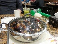 这家黄记煌位于西单北大街109号婚庆大楼7楼,开了很多年的一家焖锅连锁,这种焖锅的吃法在北京只见他一家有过。焖锅的料汁有香辣,咸辣,超辣等五六种可以选择,香辣口味和酱汁口味的都很赞,尤其是酱汁口味,是他家传统的招牌酱料,焖熟后的香味香爆了。食材可选的种类更多,比较受欢迎的是鸡翅锅和回鱼锅,个人更喜欢牛肉的多一些,因为牛肉可以更充分的吸收酱汁的香味,而且他家的牛肉特别嫩,口感很赞。再选两样素菜加在锅里,可以吸油,吃起来也不那么油腻,个人比较喜欢红薯片和白萝卜。他家长期有团购代金券,算下来人均大概六七十元,非常划算。…查看更多