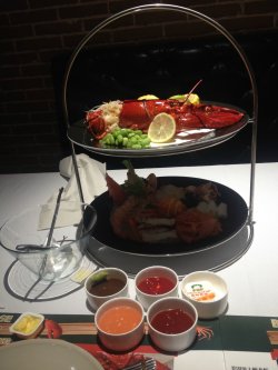 浪漫爱琴海的龙虾 yeninghua等級42013-12-089 瀏覽 關注 黑玫瑰餐厅在4楼,基本4、5、6层都是各种饭馆。西餐厅的环境不错,基本都是沙发座位,衣服挂钩很高。后面那个墙都是酒。我们被带到一个靠墙的桌子,假窗户的装饰。西餐的餐具,下面是宣传页,上面的餐巾纸是那种接近宣纸的……很薄但是颜色有点暗……落座之后便给我们上了龙井茶。(呃,这个杯子好像不是喝茶的杯子哈。)餐前面包:尖的是蒜香面包,成片的是芝士面包,都很松软:)然后龙虾就上桌了!传说中的波士顿龙虾~~~~一份是一只,但是切成两人份,除了虾头都平分了。还给了吃龙虾的工具,里面有两副薄塑料手套,看的不是很清楚。龙虾头什么的已经处理过,上面开了裂缝,有那个钩子就足够了,钳子基本用不上。另一盘是海鲜拼盘:赤身带子(日本)、雪蟹脚(阿拉斯加)、三文鱼(挪威)、红虾(阿根廷)、章鱼片(日本)、鱿鱼片(日本)、北极冰山蚌(加拿大)、甲鱼裙边(加拿大) 、甜虾(韩国)。个人觉得章鱼片和鱿鱼片比较惊艳,大且薄,雪蟹脚拍的不清楚,因为做了造型,支撑着甜虾,不过个头是很大的。三文鱼没有完全解冻,还能吃到冰碴,可惜了。随海鲜送上来的小料,只有一份。有芥末无甜姜啊……三文鱼片虽然没有完全解冻,不过里面还是很细心的每一片都附了一小片柠檬。给非常中意的章鱼片来个特写~后面的红虾也稍有些冰,不过个头挺大。龙虾钳子,肉一拨就下来了,非常新鲜。香槟酒也上了,意大利罗马之恋香槟,因为要开车,所以都给同伴喝了。正在我们嘎吱嘎吱吃的正欢的时候,忽然乱入了一个鸡汤……呃,虽然确实记得菜单上有这个汤,但是这个时候上,谁也顾不上它啊……应该在面包和海鲜之间上吧……然后,忽然又上了一个水果沙拉,因为是菜单里面没有的,所以谨慎的问了服务员:这个是甜品吗?这个是最后一道菜吗?然后对方答:牛排还没有上。不过牛排……这个摆盘实在是太寒碜了……味道还可以,从切面看是五分熟吧,但是摆盘……我们吃饭的后半段就在一直吐槽这个摆盘orz……顺便一提上面那一小块黄色的物品是波士顿炒蛋,虽然很松软,但是摆盘……小结一下:新店环境还不错,能看出来想做成很有情调的店,但是塑料韭菜真心是个败笔。菜的品质,海鲜冷冻的话最起码要解冻完全再上桌吧,不然多掉价啊。另外这个牛排重新设计一下摆盘吧,就算只有鸡蛋和白菜,也能摆出来有设计感的吧,豪华的气氛一扫而空。作为套餐,我是这么理解的:面包确实是餐前面包,海鲜是沙拉的位置,也就是前菜1和前菜2,所以汤应该在前菜前上,然后牛排是主食,酒是香槟所以配白肉,也就是海鲜,然后龙井茶是餐间饮品,最后再上甜品。菜量作为双人餐稍微有点少,另外就是,因为桌子和盘子也挺大的,调料什么的能不能按人头上呢?换来换去的,不太方便。服务方面店家很尽心,虽然有一点小纰漏,(比如毫无预兆的忽然关灯,我们都以为要点蜡烛,但是一分钟之后又亮了),但是整体是非常愉快的。…查看更多+ 8以上食評乃用戶個人意見 , 並不代表OpenRice之觀點。讚好分享浪漫爱琴海的龙虾 黑玫瑰龙虾西餐厅 https://s.openrice.com/KtbT1m0XDS800檢舉 不吃饱不高兴 大部分西餐厅上菜顺序都挺乱的,这点不太好2013-12-09 回覆 張貼 評分5味道5環境5服務5衛生5抵食推介美食牛排龙井茶餐前面包龙虾海鲜冷拼水果沙拉鱿鱼片龙虾钳子调料