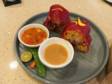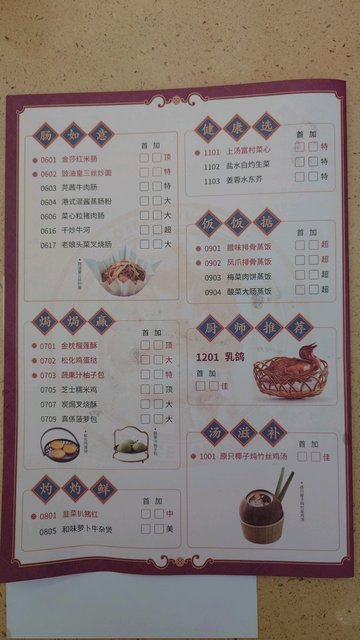 金莎鮮蝦紅米腸 / 招牌蝦餃皇 / 沙爹蒸金錢肚 / 荔灣艇仔粥 / 百合醬蒸鳳爪 / 招牌陳醋浸鳳爪