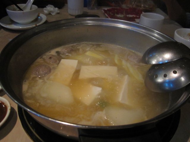 这家店的店面还挺宽敞的,主要是经营潮汕火锅的,店里面的装修看起来是比较普通的,很一般的感觉,卫生条件还可以吧,比较整洁干净,店里面的服务还不错,口味来说比较普通吧,消费在人均50左右,感觉性价比一般。我们要的牛杂火锅,麻辣口味的锅底,这个做的比较一般,感觉锅底没什么料,麻辣的味道也不是很足了。牛杂锅里面有牛肺,牛心和牛肚,牛筋等等,料不是很多了,两个人的分量明显不够的,另外还自己点了一些蔬菜和主食才吃饱,他家的蔬菜单点挺贵的,不怎么划算。总的来说是比较一般的一家店吧,普通水平。…查看更多