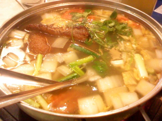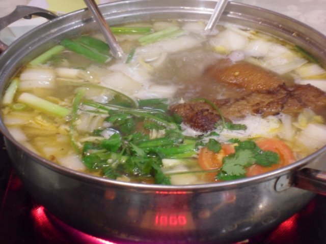 蘸水非常“贵州” SevillaDusk等級42010-11-2539 瀏覽 關注 因为我感冒喉咙痛的关系,有两个星期的家庭聚餐都没有吃辣的东西了,爸妈早就在抱怨,说想吃些“有味气”的东西。这次又凄凉地感冒,按捺不住的老爸终于逮着机会抓我去吃热辣辣的贵州菜。 下班赶过去,大家已经围桌坐好,一见我就喊“贵州菜专家快点来点菜!”一看菜谱,还真是标准的贵州餐馆模式——一张A4大小的火锅单,一张过塑的A5大小炒菜单。老爸开始说只吃炒菜,看来看去炒菜单上提供的菜品也凑不出一桌来,于是说服他还是吃火锅。锅底当仁不让是贵州红酸汤,新鲜鲶鱼是一定要的,酥肉一份,用不知道哪来的宣传券点了一份原价¥68特价¥28的香辣带皮牛肉,操着贵州话的老板娘极力推荐肉丸子——说是贵州空运的山猪肉(怀疑)——念着表哥爱吃肉还是点了一份,还点了金针菇、冬瓜、油麦菜、豆腐、海带、淮山、红薯粉,另外点了折耳根炒腊肉,小米鲊,酸汤米豆腐,苹果醋。 锅底很快端上来,红色的汤汁翻滚着,飘出酸酸的香气,很勾人食欲。 别的东西上得比较慢,小妹有点不够机灵,导致饥肠辘辘的我们看着翻滚的酸汤流口水。 鲶鱼很嫩,肉丸子也还算可口。酥肉腌的味道不错,有淡淡的花椒香味,算是正宗的味道,可惜全是肥肉,几乎看不到瘦的,怨念……所以只咬了一口。 红酸汤火锅吃的其实不是涮的东西,而是酸汤本身而已,所以非常酸的酸汤对嗜酸的我来说尊好吃~ 折耳根炒腊肉粉不错,折耳根还蛮嫩的,超爱吃折耳根的我们三下五除二就瓜分的一干二净。 带皮牛肉热辣出锅,¥28足有两大碗,真是很划算,牛肉新鲜有嚼劲,也很入味,又不会像贵州那么油,真的很下饭。 小米鲊是“甜味”小米鲊,味道倒是不错,但是我还是喜欢吃带肉的“黔味”。 米豆腐是白酸汤,很清香,但是这么冷的天气还是少了点“爽”的感觉。 蘸水非常“贵州”,焦香的糊辣椒加非常咸的酱油、葱花,再问老板娘要几滴木姜子油,浇两勺红酸汤,混过瘾~ 连米饭也很贵州——又干又硬松松散散的,只吃了一碗尖,哈哈哈。 埋单据说两百多,送了¥60晚市券和¥40午市券,蛮实惠的。但是无论味道多好,就是不如在贵州吃的那么热闹——看来低矮的小板凳、油腻脏乱的环境才是红酸汤的绝配哇~…查看更多以上食評乃用戶個人意見 , 並不代表OpenRice之觀點。讚好分享蘸水非常“贵州” 鼎好黔莊 https://s.openrice.com/KtbT0W0Yoy000檢舉 張貼 評分2味道1環境2服務2衛生2抵食推介美食折耳根炒腊肉人均消費¥35