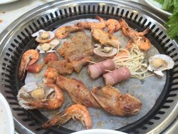这家店大概8月份时候到小营那边看我妈最要好的朋友,中午我们五个人,包括老妈的朋友和朋友的爱人。其实他们也很流行团购,之前早就团购好了,我们是晚上去的,因为是开车去的,没注意公交车,那条马路叫小营东路的3号,有个什么大厦,在3层。环境还挺好的,也挺大的,有沙发座,挺舒服的,服务员态度还行,就是如果要个什么东西,会拿来很慢。这里吃饭必须2个小时,限量的产品是生蚝、扇贝、烤鸭、蟹腿等等,不过这些我们都吃到了,烤鸭需要说明一下,因为排队很难,所以一起吃饭的人多比较好,可以让一个人去排,另外几个人干别的。他家烤鸭的味道还是不错的,脆皮嫩肉,挺香的。生蚝和扇贝都是生的,弄一点儿酱油什么的,可以浇在上面吃,还算新鲜。巴西烤肉是现烤的,热乎的味道很好,肥瘦相间,肉质也还不错,串挺大。其他的肉、海鲜和蔬菜烤着吃也很棒,大虾个头挺大的,肉挺新鲜,黄花鱼、平鱼什么的也都不错。小吃那边喜欢排骨,广味的,虽然排骨不是很烂,味道还不错。果汁有鲜榨的,但是喝起来不像,随便喝喝还成吧。其他除了烤肉还有小火锅,锅底自己选,我就要了清汤的。自己拿了虾、扇贝、带子、鱼等等,涮着吃挺好的,吃了好多大虾。我们五个人还开了一瓶红酒,还不错,可能是便宜的,但是味道还可以,也不太懂怎么才叫好喝的红酒。查看更多