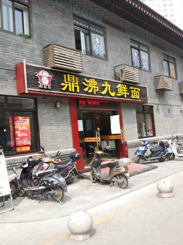 鼎沸九鲜面的服务还可以,价格中上等。招牌九鲜面吃的人很多,15元一碗,端上来一看一大碗,上面铺着满满的菜,有青菜,肉丝,西红柿,香肠,鸡蛋等,每样菜分量不多,加在一起足够一个人吃了。面条很筋斗,汤汁很鲜,味精估计放得也多。香肠比较的瘦,自己做的。…查看更多