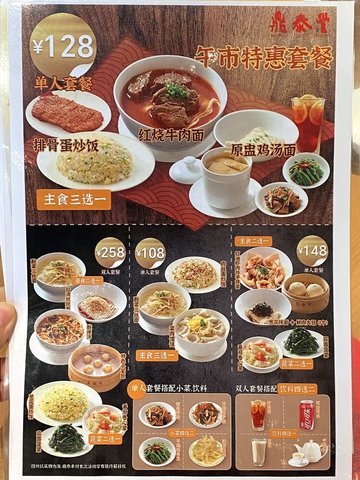 蟹粉小籠包 / 特色小籠包 / 紅油蝦肉抄手 / 四喜烤麩 / 紅燒牛肉麪 / 酒香腐竹菠菜